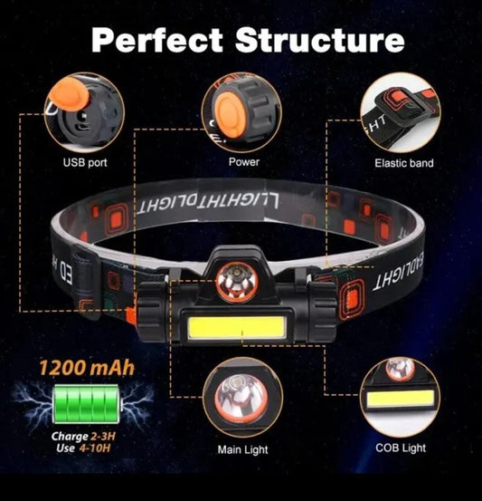 Waterproof headlight with adjustable headband Flashlight for outdoor camping and cycling.